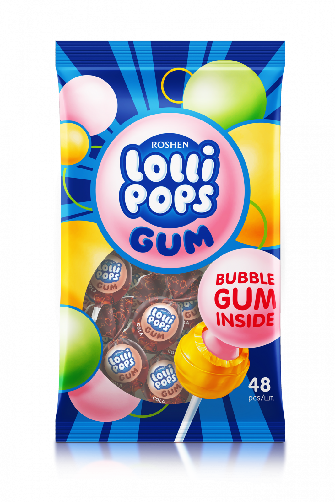 Roshen Acadele cu gumă LOLLIPOPS COLA GUM aromă de cola 0.92kg