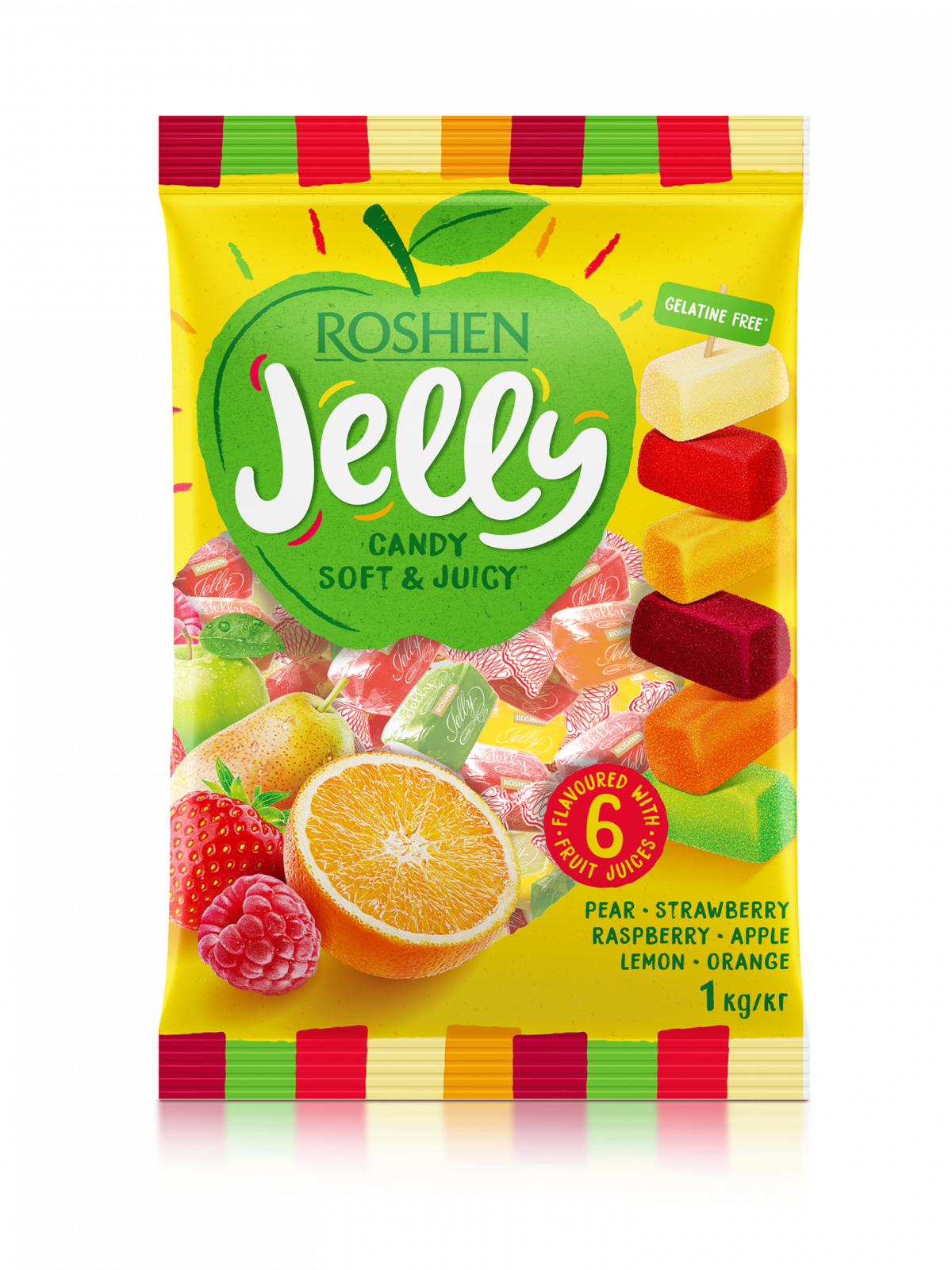 Mix de jeleuri învelite în zahăr cristalin fin cu suc natural de: pere, mere, portocale, lămâie, căpșuni și zmeură.